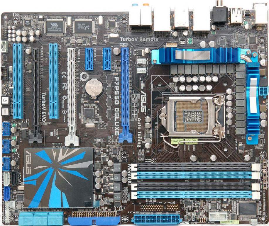 ASUS P7P55D Deluxe выделяется на фоне собратьев усиленной подсистемой питания центрального процессора, насчитывающей, ориентировочно, 19 фаз. В сочетании с восьмиштырьковым коннектором EPS12V это обеспечит стабильное электропитание ядра Lynnfield, которое в разгоне будет потреблять гораздо больше заявленных 95 Вт.