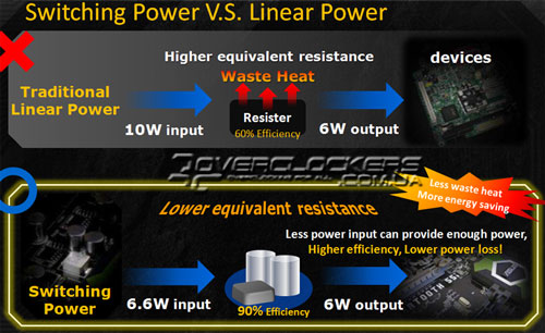 Кроме того, платы этой серии будут оснащаться импульсными преобразователями питания не только для процессора и памяти, но и для чипсета, видеокарт и PCI-устройств, что повысить эффективность работы подсистемы питания платы в целом. Также будут уменьшены пульсации в блоке VRM процессора, за счет чего удастся повысить стабильность работы последнего при разгоне.