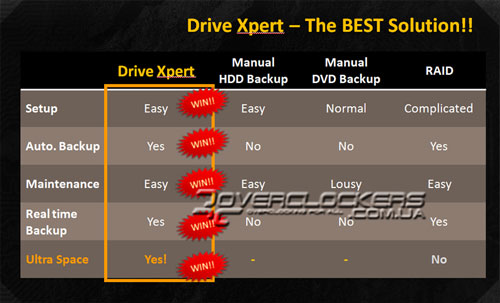 Дополнительно к MemOK! материнская плата SaberTooth 55i будет поддерживать технологию Drive Xpert, которая благодаря специальному чипу сможет создавать резервные копии данных в реальном времени.