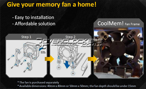 Q-DIMM — за счет измененных защелок с одной стороны слотов памяти можно без проблем вынимать модули без демонтажа крупногабаритной видеокарты, если графический слот близко расположен к разъемам DIMM. Тем более что теперь с одной стороны памяти крепится вентилятор для охлаждения планок, и защелки старого типа были бы просто не уместны. Кстати, по поводу вентилятора — можно использовать любую модель типоразмера 40х40 или 50х50 мм и толщиной 15 мм.