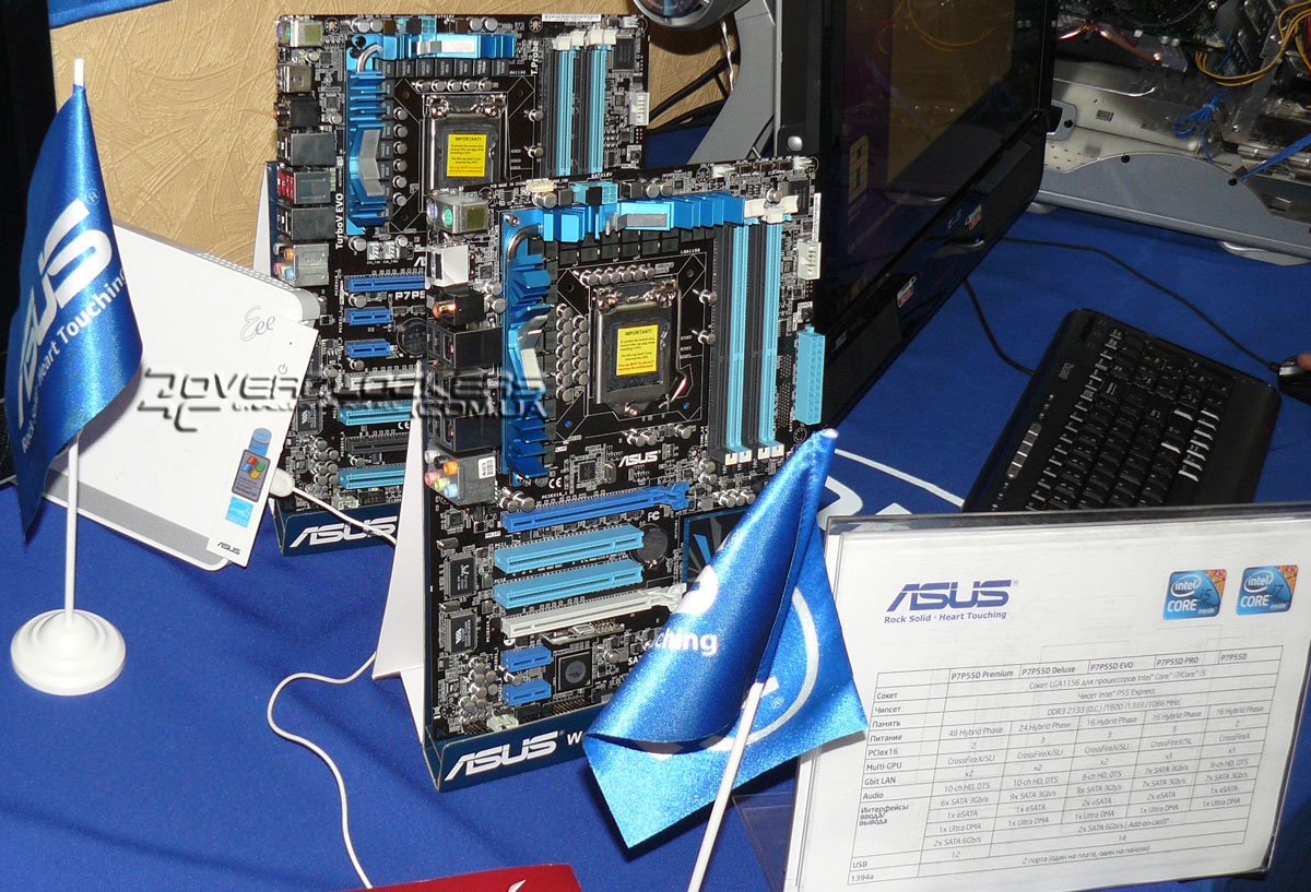 В ходе презентации Core i5/i7 Lynnfield в Киеве украинские представительства ASUS, Gigabyte и MSI показали новые материнские платы LGA1156. Приведенные ниже фотографии можно увеличить одним кликом мыши.