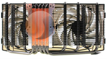 СО для видеокарт Bifrost VD1065 имеет достаточно стильный вид. Ее габариты составляют 234 (Д) x 112,5 (Ш) x 51,5 (В) мм, вес производителем не уточняется. Для отвода горячего воздуха от видеоядра адаптера используются пять 6-мм медных тепловых трубок, которые находятся в непосредственном соприкосновении с поверхностью чипа (фирменная технология Heat-pipe Direct Touch). Трубки пронизывают 23 пластины алюминиевого радиатора, вся же система обдувается двумя 100-мм вентиляторами с постоянной скоростью вращения крыльчатки 2000 об/мин. Новинка обладает неплохим показателем уровня производимого шума, здесь он равен 20 дБ.