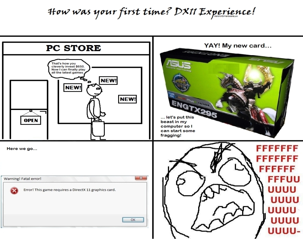 По его условиям, каждый желающий старше 16 лет может выиграть одну из трех видеокарт PowerColor PCS+ HD 5770 или главный приз – PowerColor PCS+ HD 5870. Достаточно лишь представить на суд публики фото или коллаж (или, как у нас обычно говорят, «фотошоп»), который бы выражал, в каком экстазе вы (ваш кот) были в момент первого запуска DX11-игры. Покупать Radeon HD 5xxx при этом, конечно же, не обязательно ;)