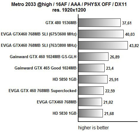 По скорости пара GeForce GTX 460 768 МБ уверенно (хотя и не всегда) превосходит старшее решение. Убедиться в этом можно, ознакомившись с первоисточником.