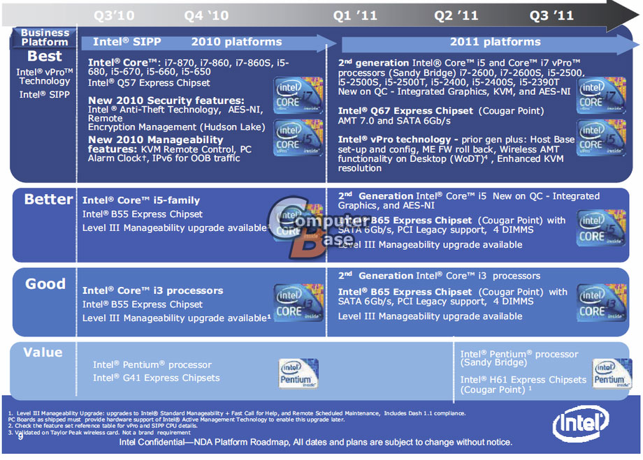 Как и сейчас, процессоры LGA1155 будут разделены на классы – Core i3 (бюджетный сегмент, базовая производительность), Core i5 (среднеценовой сегмент, достаточная производительность в большинстве приложений, поддержка Turbo Boost 2.0) и Core i7 (high-end-сегмент, максимально возможное быстродействие в рамках серии).