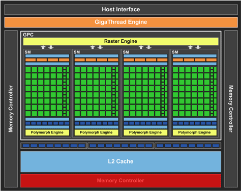 Скромные возможности GTS 450 (32 текстурных блока, 16 ROP) компенсируются высокими заводскими частотами, которые составляют 783/1566 МГц для растрового и шейдерного доменов и 902 МГц (3608 МГц QDR) для микросхем памяти стандарта GDDR5 объемом 1 ГБ. Возможно, в будущем мы также увидим бюджетные варианты GeForce GTS 450 с 512 МБ «оперативки».