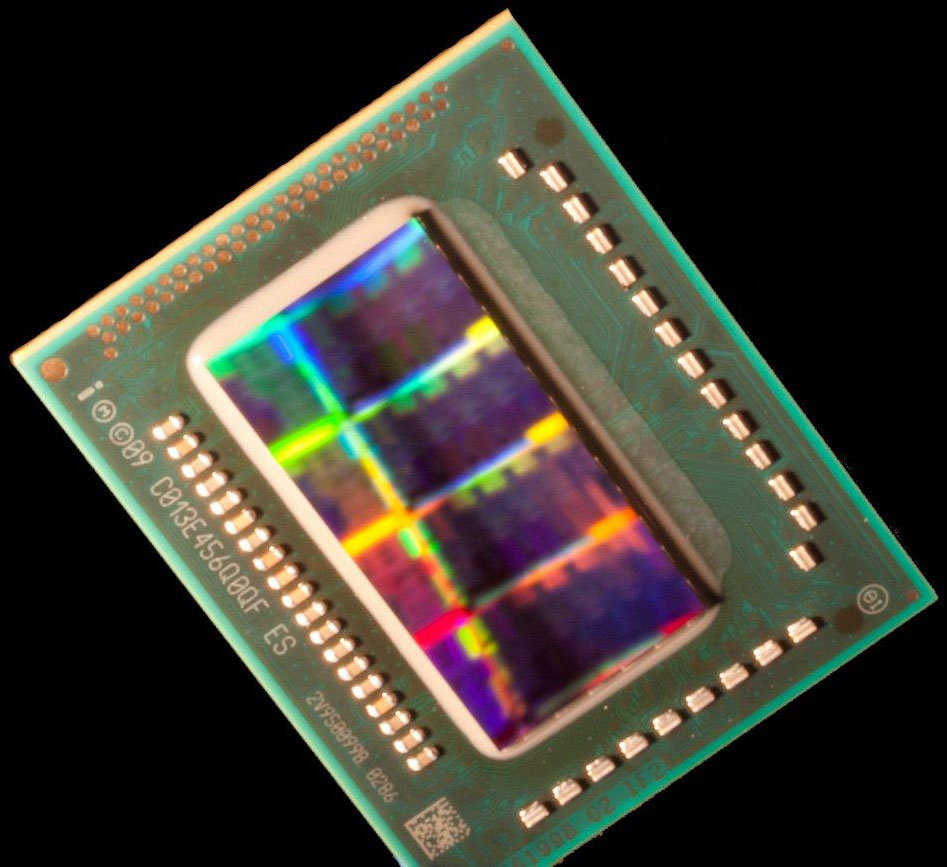 Ниже приведены фотографии настольной и мобильной версий этих перспективных 32-нанометровых процессоров без защитной крышки.