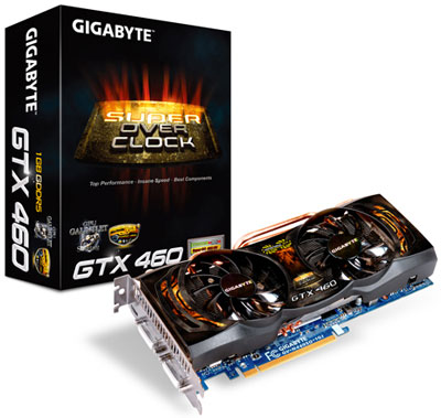 Серию видеокарт Gigabyte Super Overclock (SOC) характеризуют: отборные GPU, улучшенный схемотехнический дизайн печатных плат, эффективные системы отвода тепла и повышенные тактовые частоты. Все это справедливо и для продукта на базе NVIDIA GeForce GTX 460 1 ГБ, который на сайте Gigabyte носит обозначение GV-N460SO-1GI.