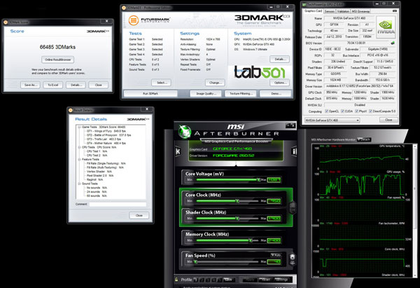 Специалистам lab501 удалось «выжать» из Gigabyte GeForce GTX 460 Super Overclock 950 МГц по чипу и 4800 МГц по памяти и успешно испытать карту на стабильность бенчмарками 3DMark03, Far Cry 2 и Lost Planet 2.