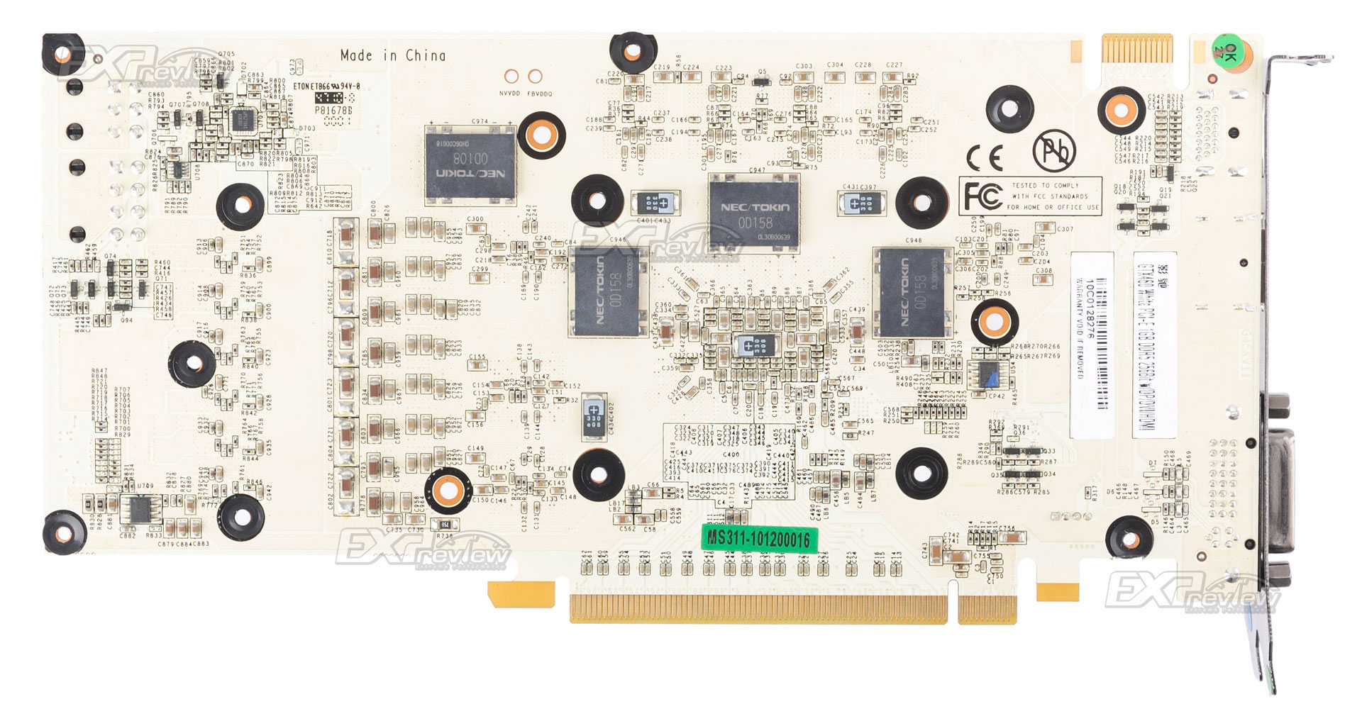 В качестве системы охлаждения применяется массивный кулер с четырьмя медными тепловыми трубками; на панели видеовыходов нашлось место разъемам Dual-Link DVI-I, HDMI и DisplayPort.