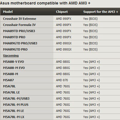 Первых представителей микроархитектуры Bulldozer готовы принять «на борт» Asus Crosshair IV Extreme (чипсет AMD 890FX), Crosshair IV Formula (890FX) и четыре платы линейки M4A89 на основе управляющих чипов AMD 890FX и 890GX. Кроме того, Asustek готовит бюджетный «десант» из десяти материнских плат AM3+ на базе AMD 880G, 870 и 760G: