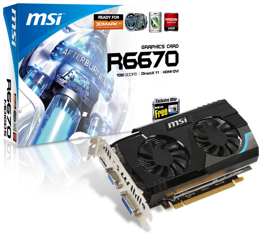 Карта не требует подачи дополнительного питания, поскольку пиковое энергопотребление устройства ограничивается значением 66 Вт. В комплект поставки входит драйвер AMD Catalyst и инсталляторы приложений MSI Live Update, StartOSD, Dual Core Center, Live, Adobe Acrobat Reader и Norton Internet Security 2008 (60-дневная trial-версия). Решение MSI R6670-MD1GD5 поступит в продажу по цене $100 в США и по цене $110-115 в Украине.