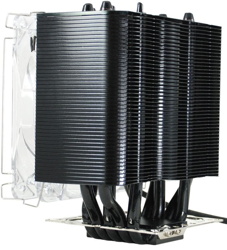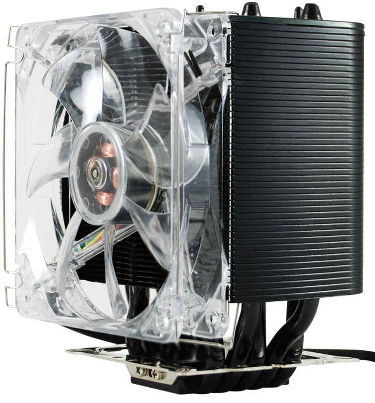 Охладитель состоит из пяти медных тепловых трубок сечением 8 мм, непосредственно соприкасающихся с крышкой ЦП, массива алюминиевых ребер и вентилятора типоразмера 120 x 120 x 25 мм с красной LED-подсветкой. Последний работает на скорости от 750 до 2500 об/мин, обеспечивая интенсивность воздушного потока на уровне 26...84 фут3/мин.