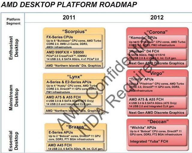Сложности с освоением 32 нм техпроцесса у Advanced Micro Devices видны невооруженным глазом. Компания отменила релиз 10- и 8-ядерных чипов Komodo и платформы Corona в целом, признав, что в 2012 году не успеет выпустить данные решения на рынок. Взамен выйдут архитектурно более близкие к Zambezi 8-ядерные «камни» Vishera. По всей видимости, они обойдутся без нативной поддержки PCI Express 3.0.