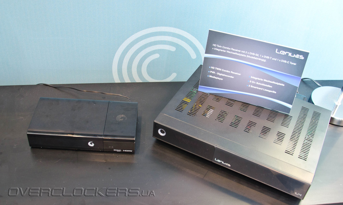 Также на стенде Seagate демонстрировался новый мультимедийный проигрыватель компании GoFlex Cinema. Следуя все той же концепции использования накопителей с универсальными разъемами и переходников под разные нужды к ним, устройство представляет собой «приставку» к настольному накопителю GoFlex Desk емкостью до 3 ТБ, обеспечивающую воспроизведение наиболее распространенных типов мультимедийных файлов и вывод их по интерфейсам HDMI, RCA или оптическому SPDIF (для цифрового звука). Также предусмотрено два разъема USB для подключения к ПК и каскадного подключения второго накопителя (либо дополнительного устройства, например, стороннего пульта или адаптера Wi-Fi).