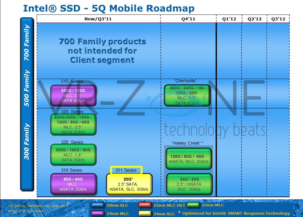 На смену твердотельным накопителям линейки Intel SSD 510 процессорный гигант из Санта-Клары готовится представить новые, более быстрые и современные решения с интерфейсом SATA 6 Гбит/с. Обновленная серия высокопроизводительных SSD от Intel закономерно получит название Intel SSD 520 (кодовое имя Cherryville) и будет включать пять моделей ёмкостью 60, 120, 160, 240 и 480 ГБ, что позволит охватить большой круг потенциальных покупателей.