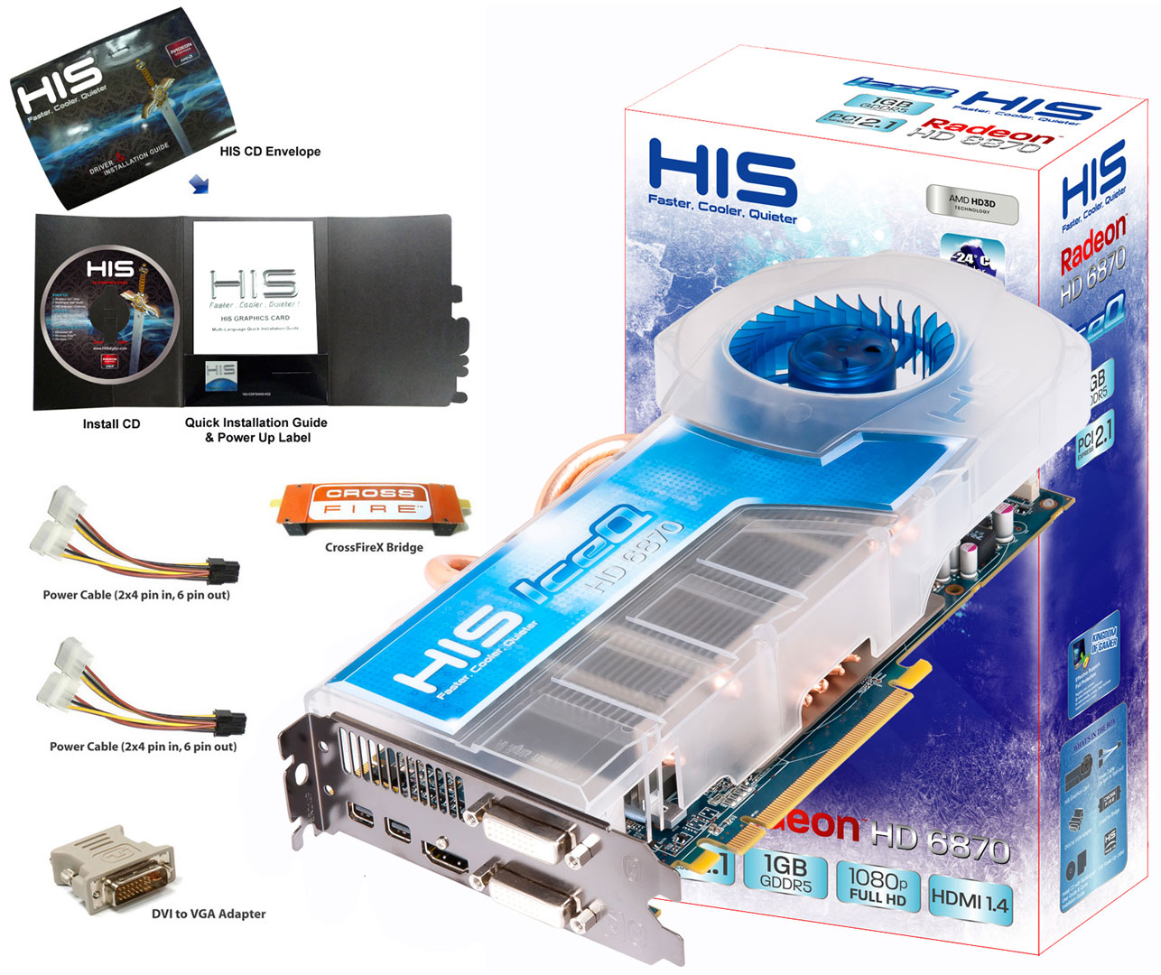 Как и другие карты линейки Barts (XT), продукт HIS 6870 IceQ располагает 1120 потоковыми процессорами, 256-битной шиной памяти, набором видеовыходов Dual-Link DVI-I, Single-Link DVI-D, HDMI и Mini DisplayPort (2). Адаптер рекомендовано использовать совместно с 500-ваттным блоком питания или более мощным.