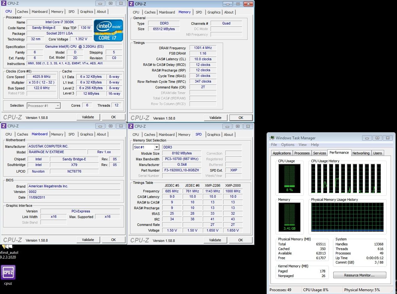 По результатам заводского тестирования, два 32-гигабайтных (4 x 8 ГБ) набора RipjawsZ DDR3-2400 смогли функционировать одновременно в составе конфигурации с процессором Core i7-3960X EE и материнской платой Rampage IV Extreme на частоте 2400 МГц и загрузить ОС Windows 7 на частоте 2600 МГц без использования экстремальных средств охлаждения.