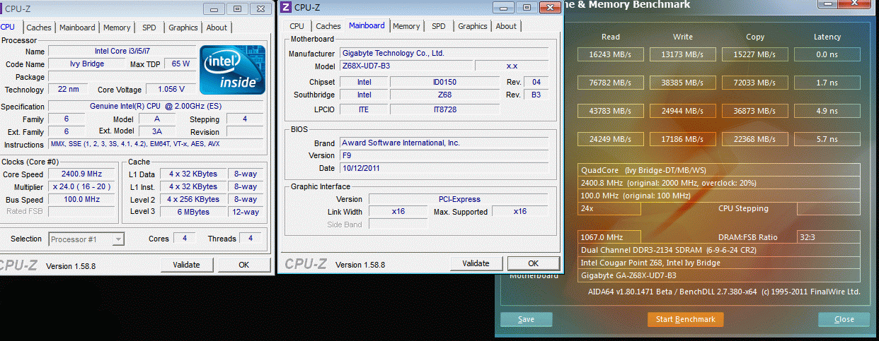 Контроллер ОЗУ процессора Ivy Bridge позволил оперативной памяти функционировать на эффективной частоте 2133 МГц с задержками 6-9-6-24 и Command Rate 2T.
