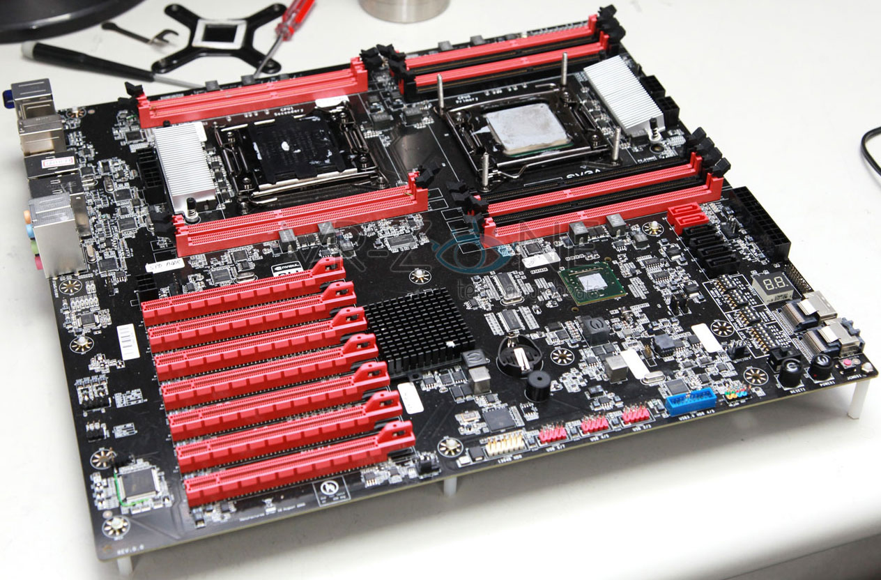 EVGA Classified SR-X выполнена в форм-факторе HPTX (345 x 381 мм), располагает двумя процессорными разъемами LGA2011 для моделей Intel Xeon E5, семью слотами PCI Express x16, предназначенными для установки графических адаптеров и скоростных SSD-накопителей, а также 12-ю слотами DIMM DDR3.