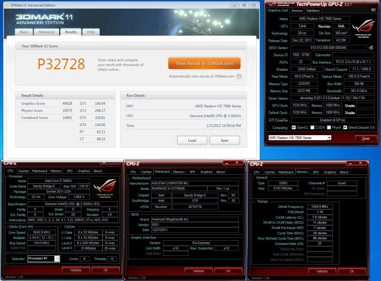 В ходе теста процессор разгонялся до 5643 МГц при напряжении 1,66 В, видеокарты — до 1470—1610 МГц по ядру в зависимости от приложения. Частота видеопамяти в Heaven DX11 достигала отметки в 7800 МГц. Покорению новых высот способствовали испарители для жидкого азота KingpinCooling F1EE (для процессора) и Tek9 6.66 (для GPU).