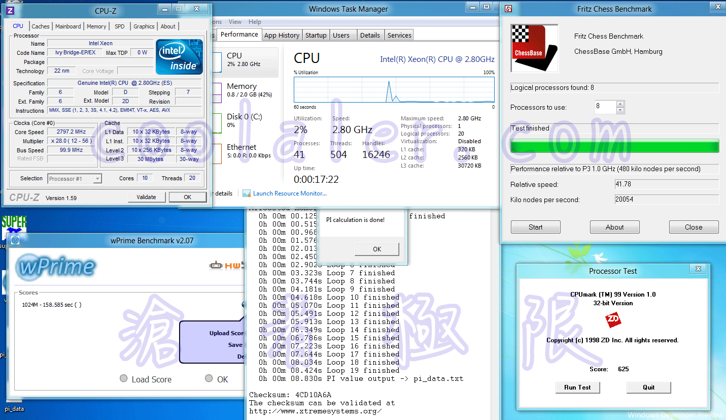 wPrime 1024M: 158,585 cек., Fritz CB: 20054 KNPS,