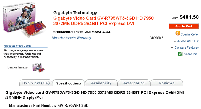 Очевидно, что установленная цена ($481,58) будет снижена в ближайшие несколько дней, потому как флагманский Radeon HD 7970 стоит ненамного дороже — от $550. Дополнительные подробности устройства модели GV-R795WF3-3GD поступят совсем скоро.