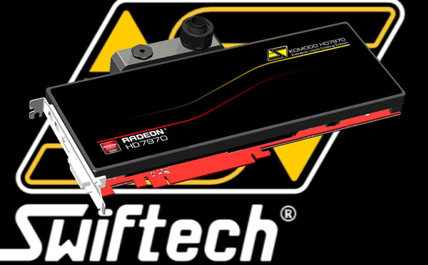 Swiftech Komodo HD 7970 полностью накрывает собой печатную плату Tahiti XT, отводя тепло как от графического чипа, так и от микросхем памяти и силовых элементов. Приятной особенностью «ватера» является наличие в комплекте поставки усилительной пластины (бэкплейта) из анодированного алюминия, которая служит своеобразным дополнительным радиатором, а также однослотовой заглушки для корпуса под стандартный набор видеовыходов — DVI, HDMI и пару Mini DisplayPort.