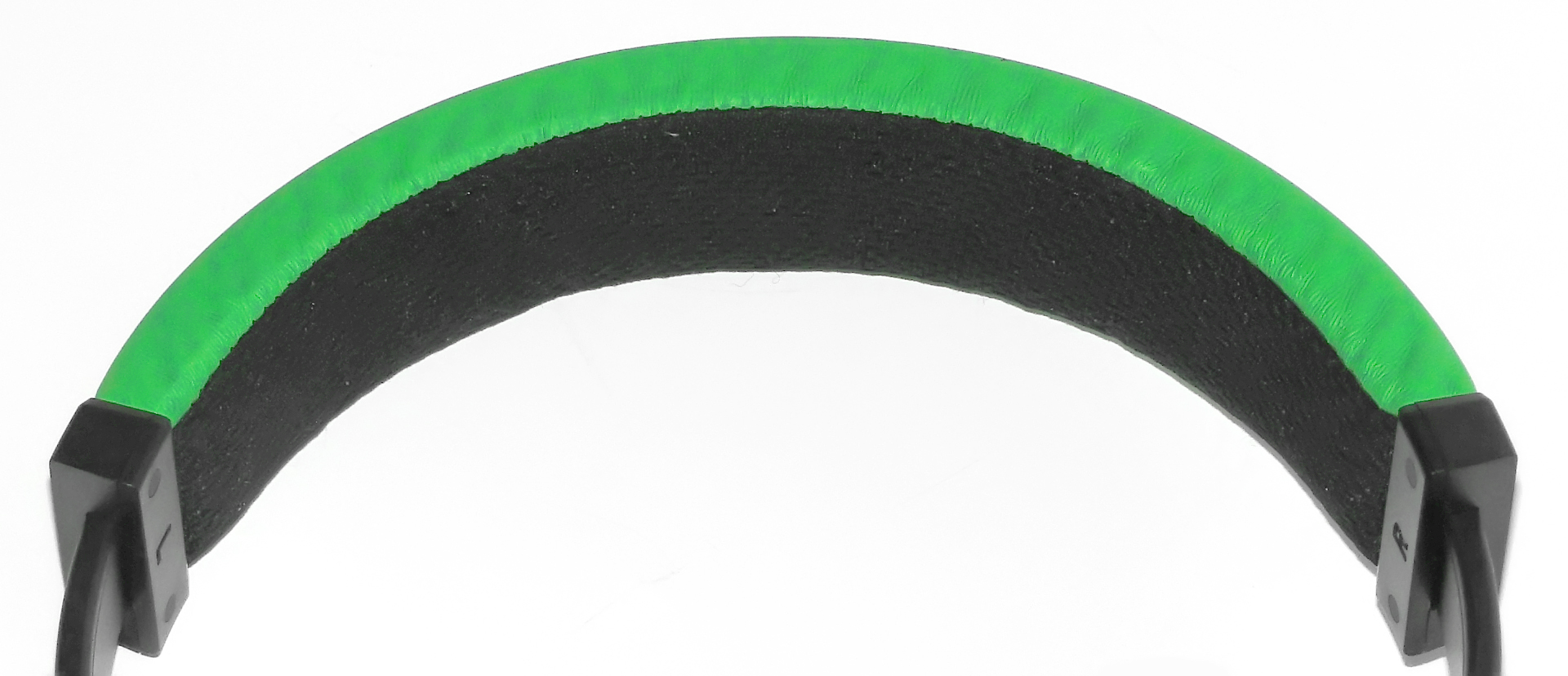 Оголовье сделано с учетом накопленного опыта его реализации в других продуктах, обеспечивая необходимый комфорт и сохранив яркий дизайн. Верхняя часть покрыта кожей все того же ядовито-зеленого цвета.. Контактная часть сделана из синтетической ткани с характерными отверстиями. Поверх нее расположена мягкая поролоновая вкладка. Внутренняя часть оголовья, мягкая на ощупь, дискомфорта при длительном ношении нет.