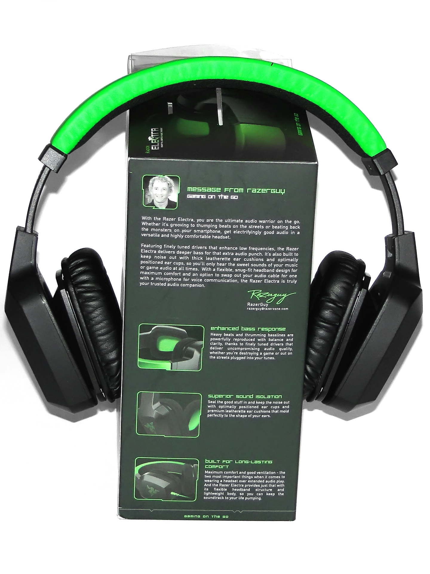 Razer Electra задумывались как Life style решение, а значит гарнитура с нами везде: дома за ПК во время очередной баталии, с музыкой в плеере на улице или работой за ноутбуком. Ушные раковины могут складываться и это практичный момент. Транспортировка теперь не будет проблемой.