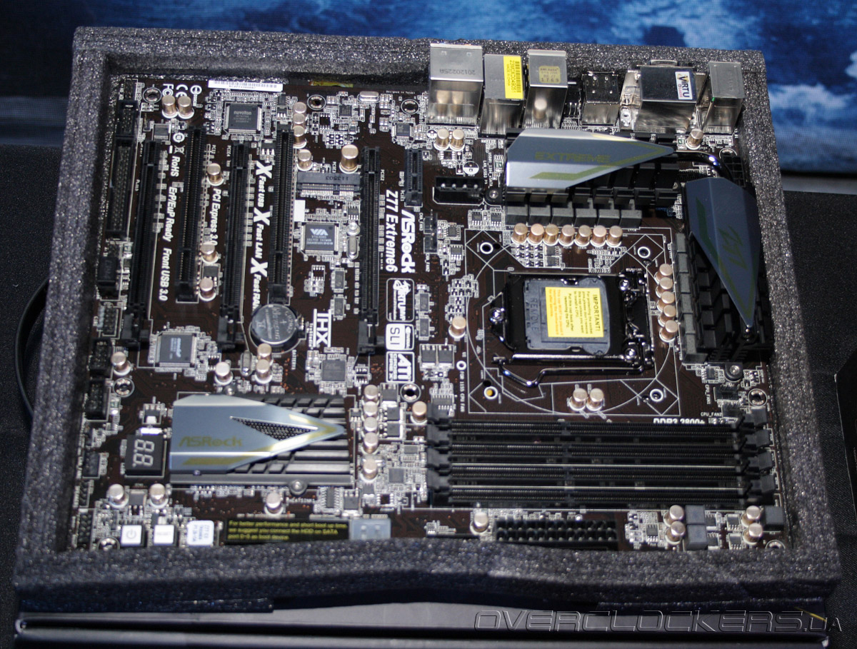 ASRock Z77 Extreme6 — высокоуровневая материнская плата, рассчитанная на оверклокеров и требовательных пользователей, оформленная в дизайне Premium Gold Capacitor, обладающая мощной, 12-фазной системой питания процессора. Три разъема PCI Express 3.0 x16 способны функционировать в режиме х8+х8+х4 при установке трех видеокарт.