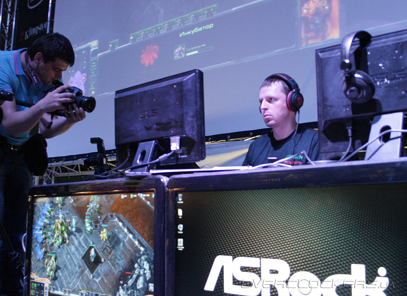 Далее посетителей ожидал показательный матч в Starcraft II между известными в геймерских кругах Алексеем «White-Ra» Крупником и Святославом «HappyZerg» Васюком. Матч завершился победой последнего со счетом 2:1.