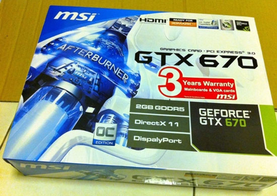 Надписи на упаковке MSI GeForce GTX 670 OC напоминают о возможности дальнейшего разгона посредством утилиты Afterburner и фирменной трехлетней гарантии.