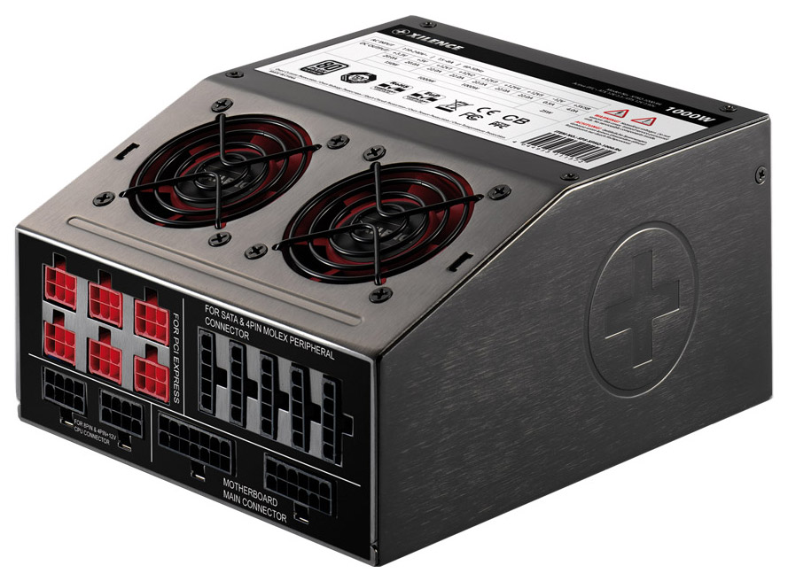 Накануне Xilence дополнила вышеупомянутую серию источником питания номиналом 1000 Вт. Новинка в ходе предпродажного тестирования получила сертификат 80 Plus Platinum, который свидетельствует об уровне КПД от 90% до 94% в сетях 230 В. Как и предшественники, блок использует модульный принцип подключения кабелей, активный механизм коррекции коэффициента мощности и соответствует стандартам ATX12V v2.3, EPS12V v2.92. Перечень доступных кабелей питания (разъемов) следующий: ATX (20+4)-pin, EPS12V 8-pin, EPS12V (4+4)-pin, 12x SATA, 7x Molex 4-pin, FDD, 4x PCI-E (6+2)-pin, 4x PCI-E 6-pin.