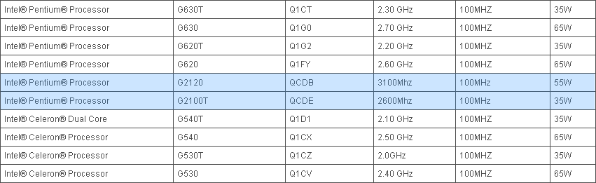 Официальных спецификаций Pentium G2100T и G2120 пока нет, предварительные же указаны на сайте Biostar, в списке процессоров, совместимых с материнской платой TP75.