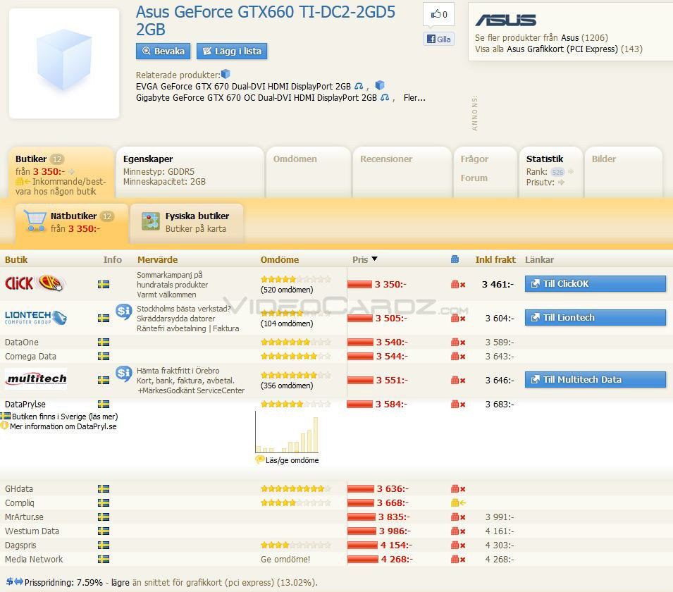 Шведские онлайн-магазины принимают предварительные заказы на GeForce GTX 660 Ti