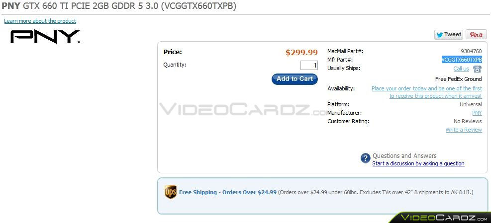 Видеокарта PNY GeForce GTX 660 Ti будет продаваться по цене от $300