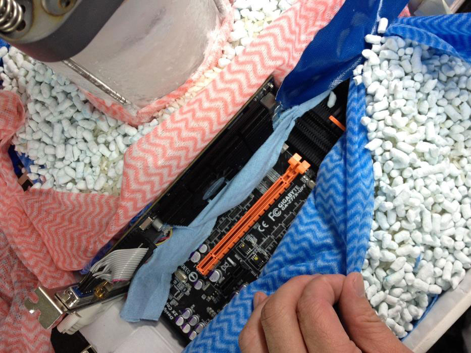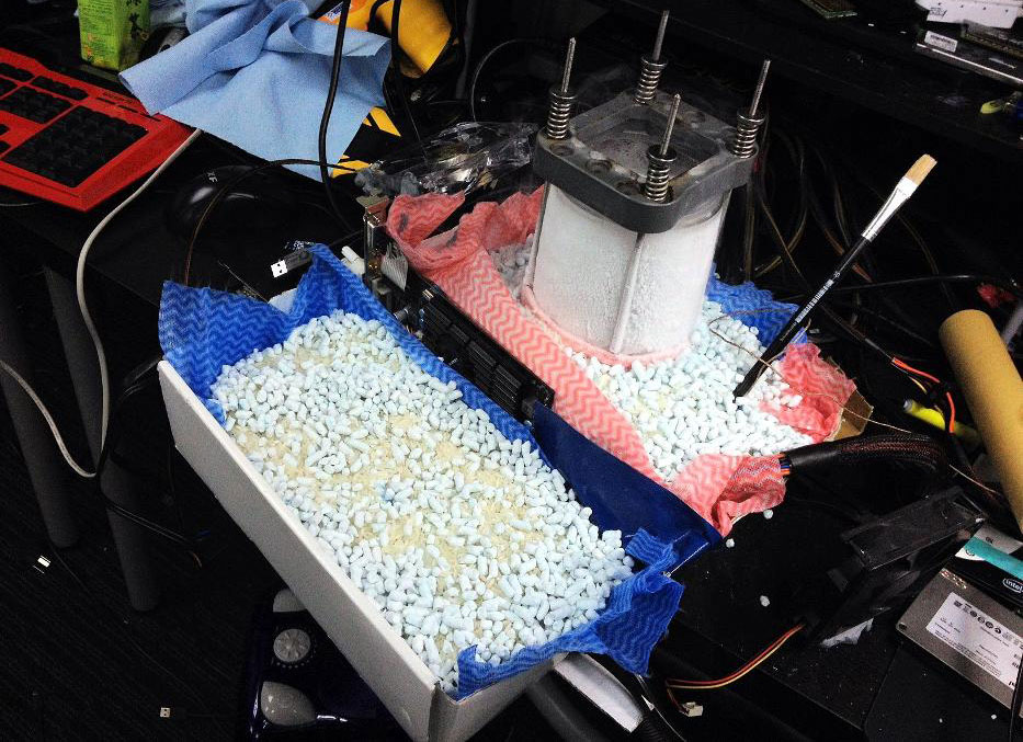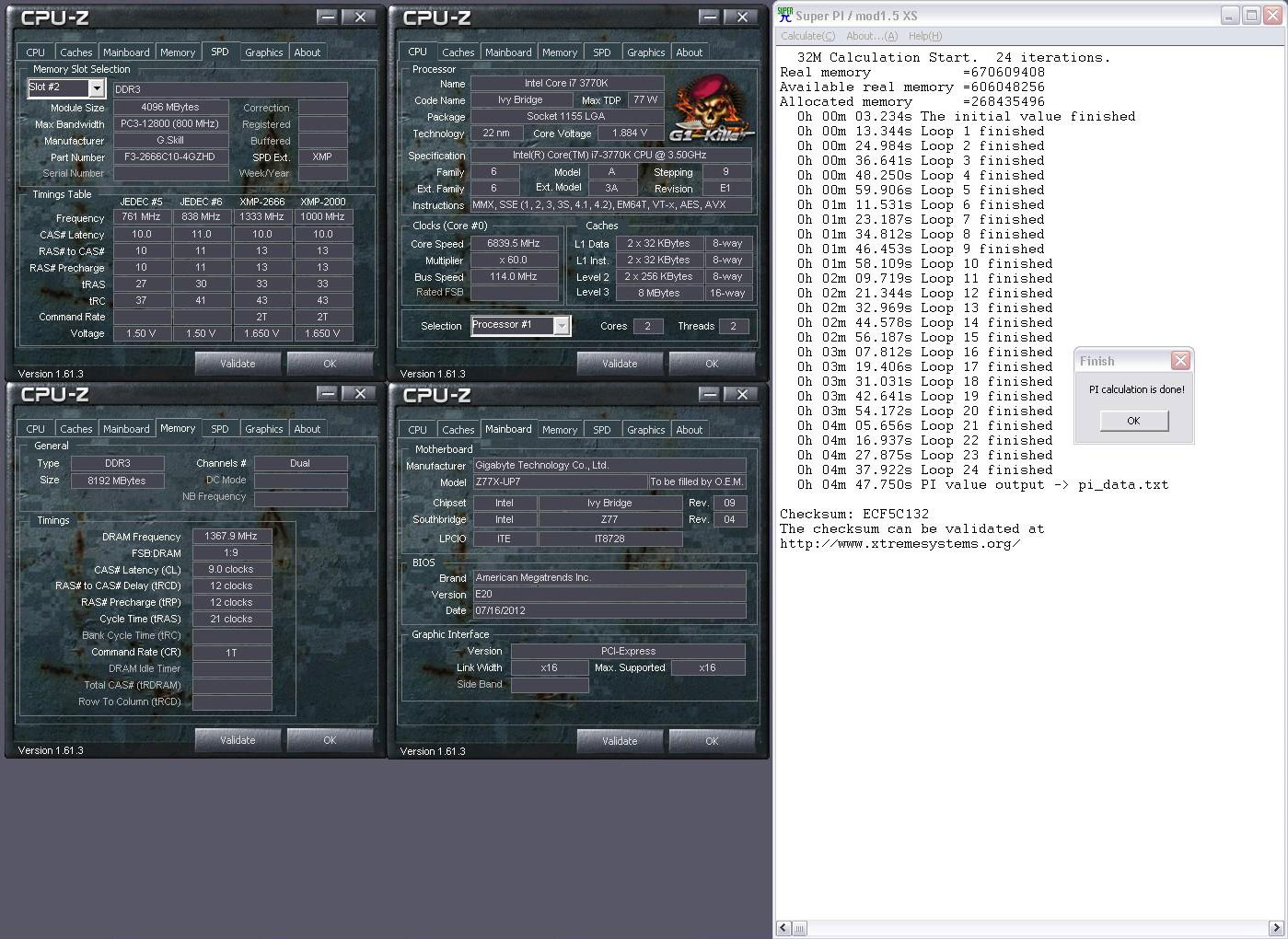 Данные о системе, собранной для SuperPi 32M, и фотографии стенда приведены ниже.