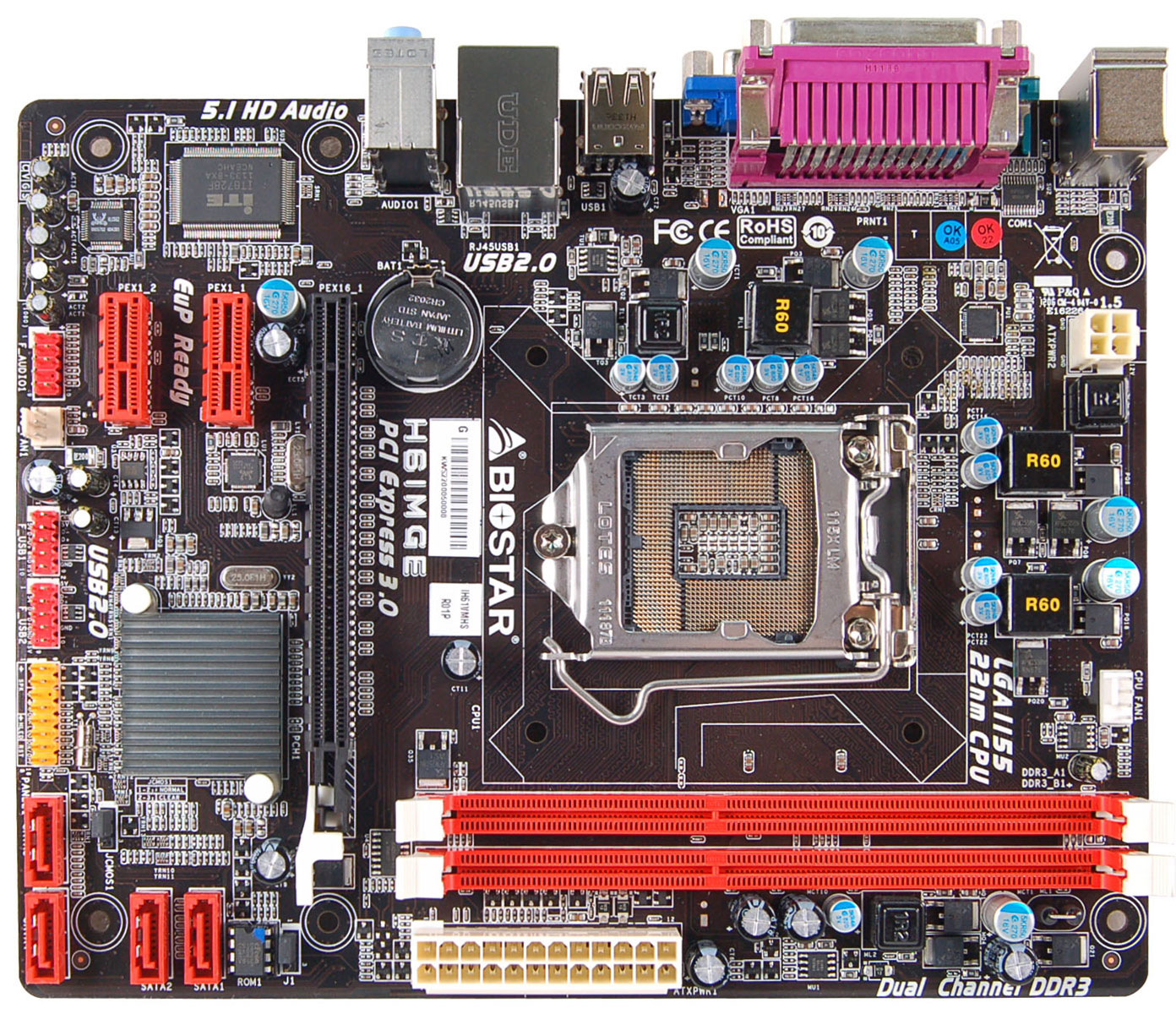 Плата Biostar H61MGE сочетает COM, LPT и PCI Express 3.0