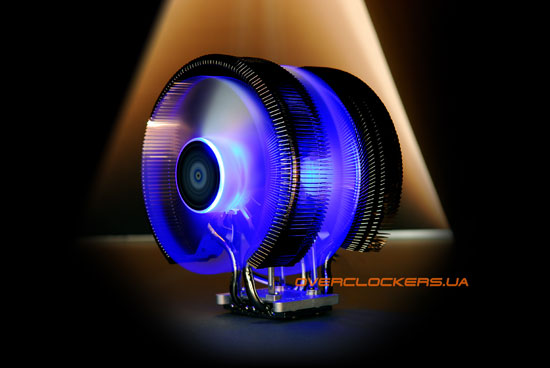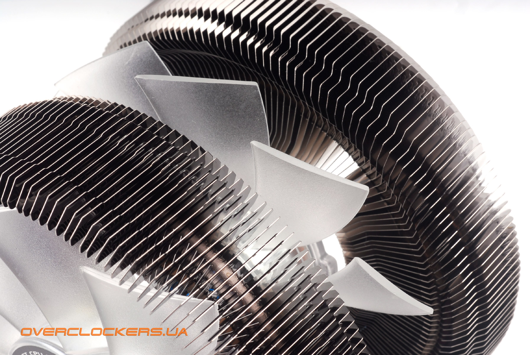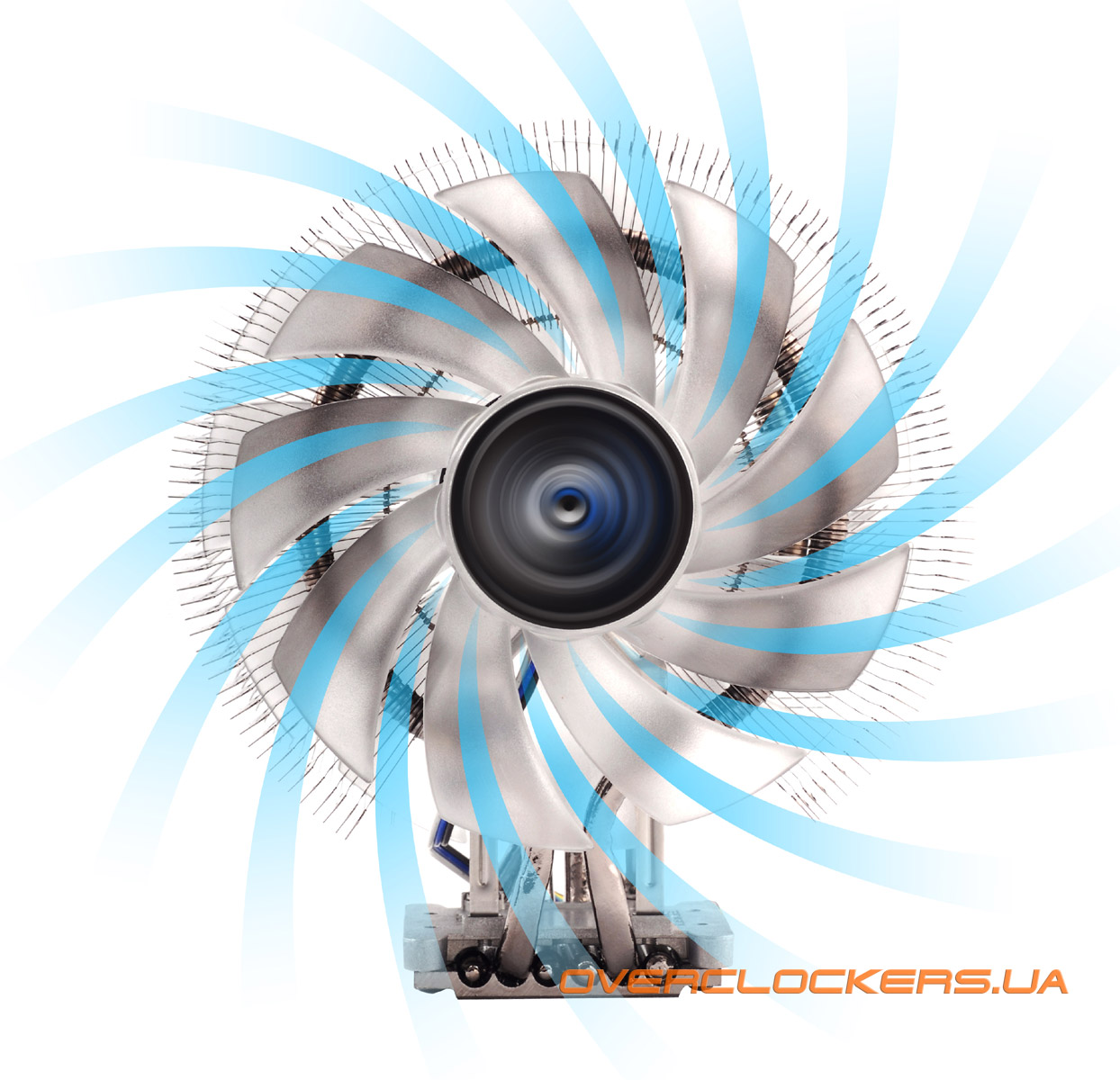 Скорость работы фронтального вентилятора равна 1000 об/мин, закрепленного в центре — от 900 до 1400 об/мин. Оба используют подшипник Long Life, синюю светодиодную подсветку и вместе издают не более 27 дБА шума.