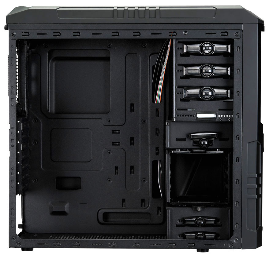 Внутри предусмотрены посадочные места для материнской платы ATX, microATX или Mini-ITX, семи карт расширения PCI Express, ATX-совместимого блока питания, пяти 3,5" жестких дисков, двух 2,5" SSD и трех оптических приводов или других устройств форм-фактора 5,25". Также можно установить до шести 120-мм вентиляторов. Один «карлсон» включен в комплект поставки.