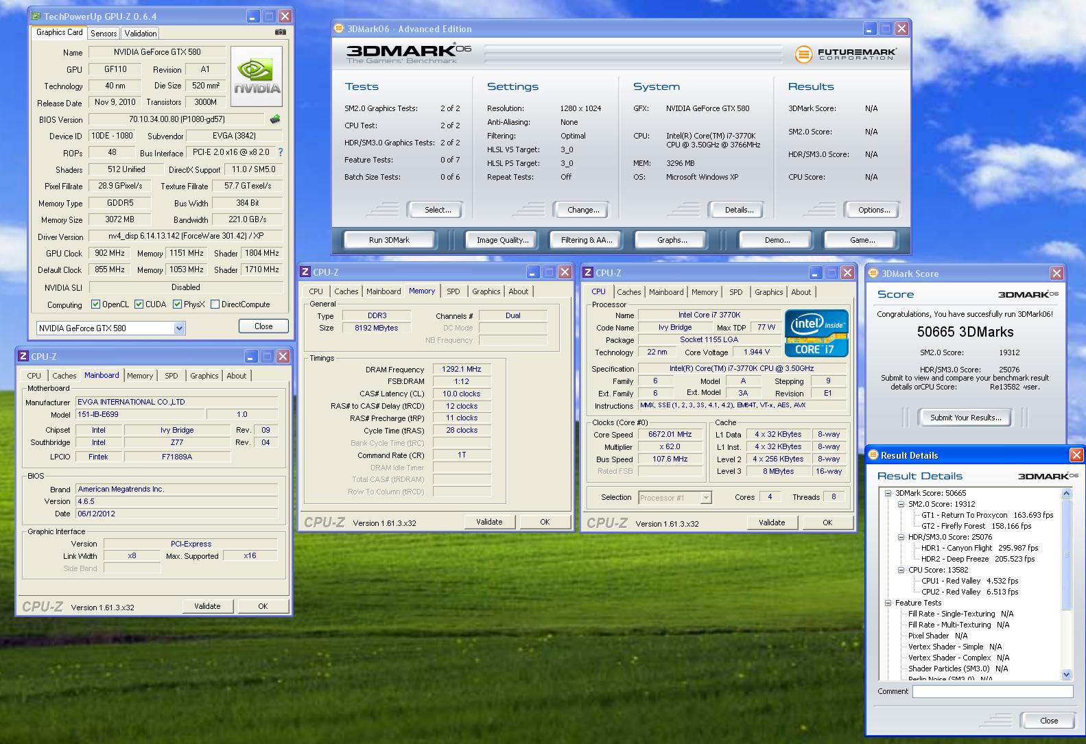 Винс «k|ngp|n» Люсидо снова близок к покорению вершины оверлокерской лиги Pro OC. За последнюю неделю он поднялся на второе место, опередив итальянского мастера разгона rsannino и известного энтузиаста Mad222 из Гонконга. Вчера k|ngp|n установил новый мировой рекорд в тесте 3DMark 06 для двух GPU — 50665 очков, использовав для этого пару видеоадаптеров EVGA GeForce GTX 580 Classified, разогнанный до 6672 МГц процессор Core i7-3770K и материнскую плату EVGA Z77 FTW.