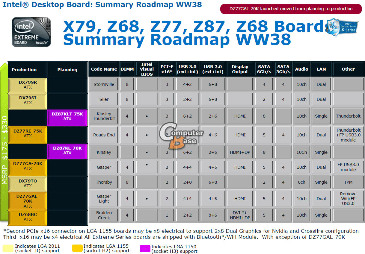 В спецификациях модели Intel DZ87KL-70K не указано количество слотов для оперативной памяти (надеемся, их все же четыре), а вместо Thunderbolt реализован видеовыход DisplayPort.