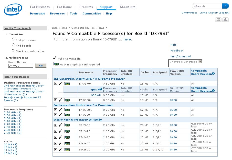 Чип поддерживает все современные технологии Intel, включая аппаратную виртуализацию VT-d и динамический разгон Turbo Boost (до 4,0 ГГц). Помимо обозначенной на скриншоте Intel DX79SI, свежий ЦП будет совместим с любыми материнскими платами LGA2011 после обновления прошивки UEFI. Оптовую стоимость Core i7-3970X Extreme Edition предсказать нетрудно — 999 долларов в партиях от 1000 шт.