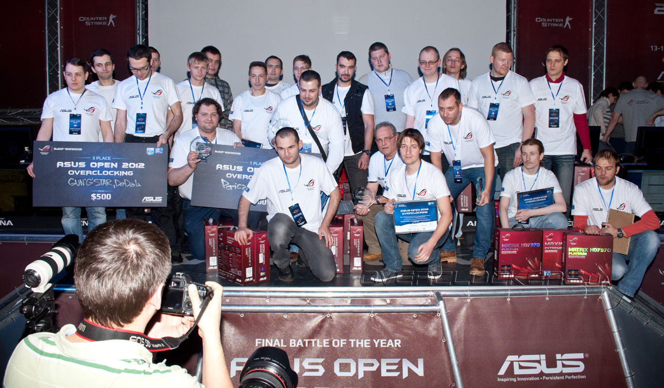 В прошлые выходные киевская Киберспорт Арена собрала целую плеяду звезд экстремального оверклокинга, которые соревновались друг с другом в турнире ASUS Open Overclocking Cup 2012. Несмотря на внушительное представительство команд из Украины и России, самыми мастеровитыми и удачливыми оказались выступавшие в паре оверклокеры из Польши и Черногории — Xtreme Addict и Perica Barii. Им достался приз в размере 1500 долларов. Еще один интернациональный коллектив в составе Aristidis (Греция) и Matose (Румыния) финишировал вторым. Замкнули призовую тройку DeDaL и Gungstar (Россия).