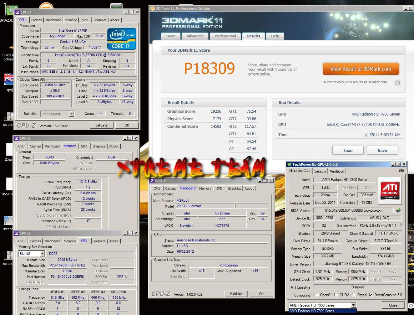 Недавний победитель турнира Gigabyte OC Winter Whiteout поляк Xtreme Addict решил потеснить украинского коллегу Максима «mtech» Сосницкого и R7970 Lightning с первой строчки в 3DMark 11, разогнав удачный образец карты Asus Radeon HD 7970 DirectCU II до внушительных 1700 МГц по чипу и до 7800 МГц для микросхем памяти GDDR5. Новый рекорд в тестовом пакете Futuremark 3DMark 11 составил 18309 очков для систем с одним GPU. Стенд включал материнскую плату ASRock Z77 OC Formula, оперативную память G.Skill Pi и блок питания Antec HCP-1200.