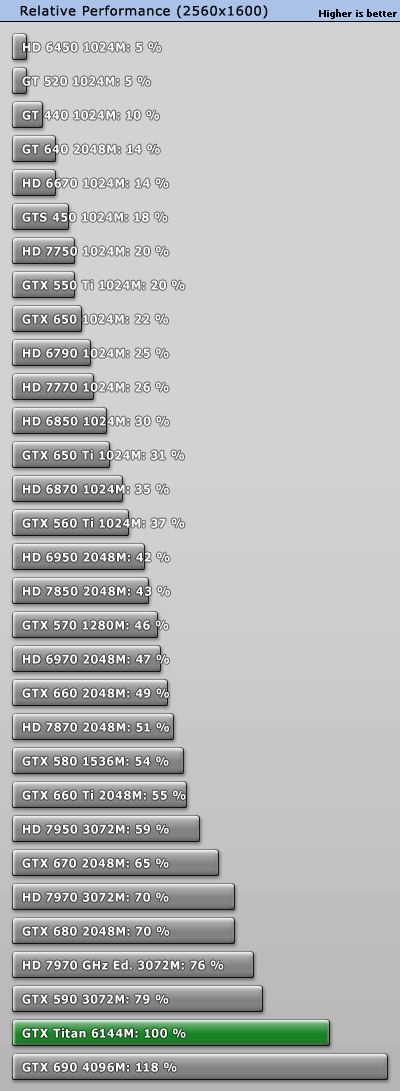 Также стоит отметить, что производительность GeForce GTX Titan пока весьма нестабильна в зависимости от игры — в некоторых из них, например Far Cry 3 или Battlefield 3, уже при разрешении 1920x1200 уровень частоты кадров новинки ближе к одночиповым решениям в лице Radeon HD 7970 GHz Edition и GeForce GTX 680, чем к двучиповому флагману Nvidia, который стоит столько же: