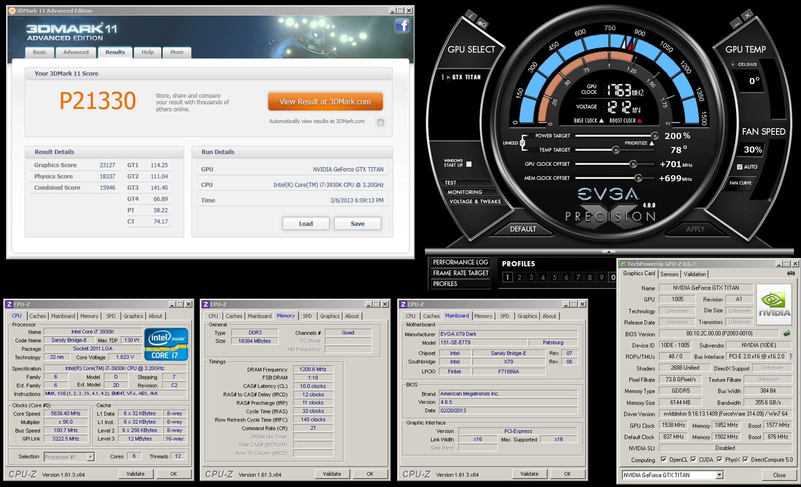Продолжает выдавать блестящие результаты и лидер команды профессиональных оверклокеров Pure американец Винс «k|ngp|n» Люсидо. 8 марта он установил новый мировой рекорд в дисциплине HWBot 3DMark 11 1x GPU — 21330 очков. В этом ему помогли: видеокарта GeForce GTX Titan, материнская плата EVGA X79 Dark, процессор Intel Core i7-3930K, оперативная память G.Skill Trident X и два блока питания EVGA SuperNova NEX 1500.