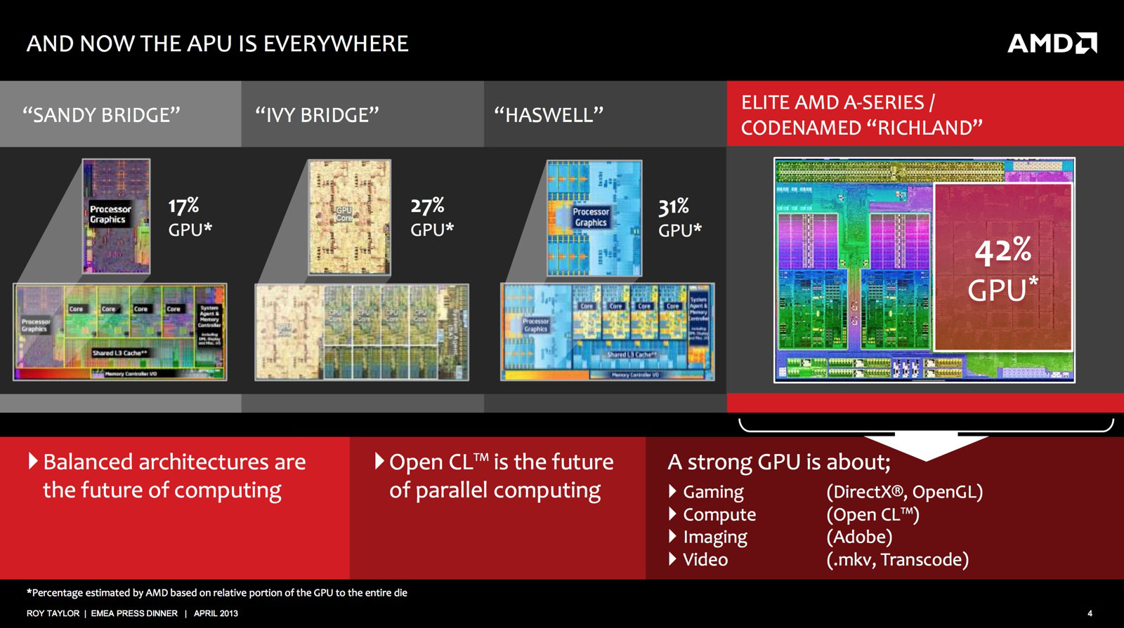 По сравнению с предшественниками Trinity (A10-5800K и младше), процессоры Richland обладают более высокими тактовыми частотами, «продвинутой» графикой Radeon HD 8000D и официально поддерживают режим работы памяти DDR3-2133.