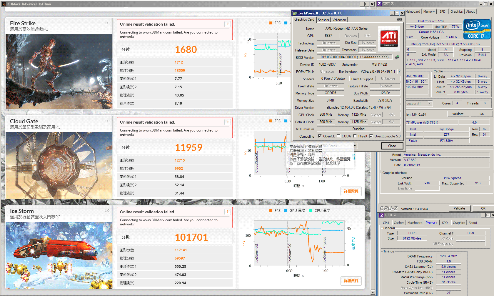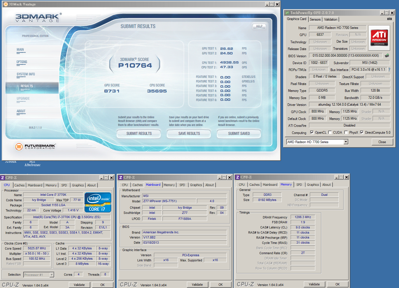Несмотря на скромные характеристики, Radeon HD 7730 с частотами 800/4500 МГц оказался почти вдвое быстрее Radeon HD 6670 (800/1333 МГц). Результаты тестирования HD 7730 приведены ниже: